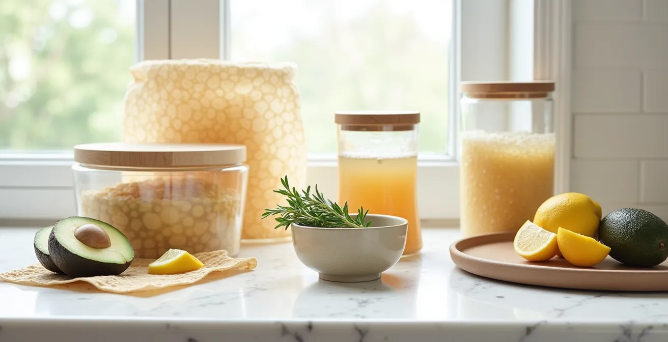 Le rouleau de film étirable qui fond comme neige au soleil est une vision familière pour quiconque pratique le « batch cooking » ou cuisine pour une famille. Chaque reste de gratin, chaque demi-oignon, chaque bol de préparation est emballé dans ce plastique à usage unique. Le constat est effarant : la poubelle se remplit à une vitesse folle, et avec elle, un sentiment de gaspillage et d’impuissance. Vous avez probablement déjà entendu parler des alternatives populaires comme les emballages à la cire d’abeille ou les couvercles en silicone. Ces solutions sont souvent présentées comme des remèdes miracles.