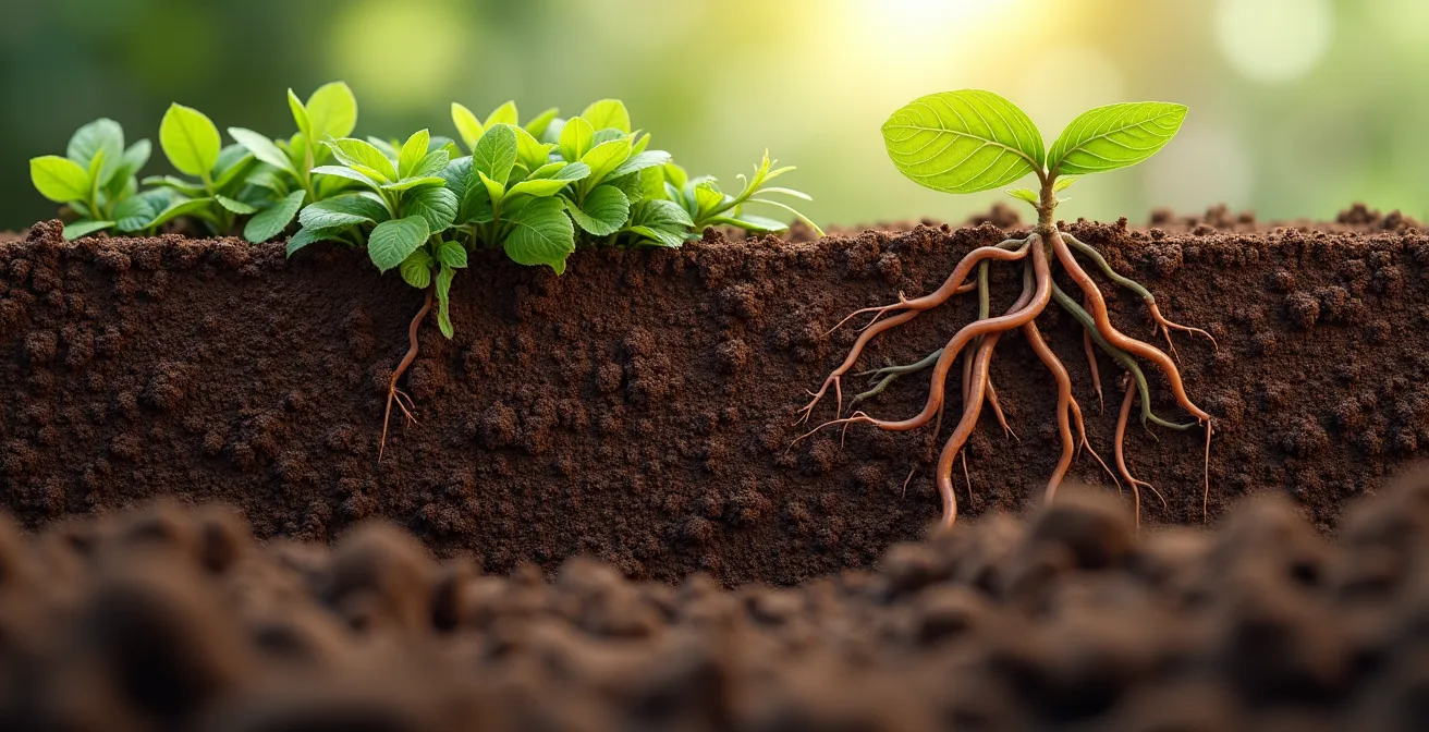 La compaction de votre sol et la baisse de vos récoltes ne sont pas une fatalité, mais le symptôme d’un effondrement de l’activité biologique. La solution n’est pas dans le travail mécanique mais dans la restauration ciblée des populations de vers de terre, véritables ingénieurs du sol, grâce à des techniques de non-labour et d’apports en matière organique qui reconstruisent l’architecture fertile de votre terre.